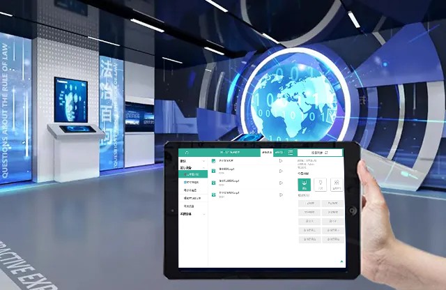 智能化多媒体中控系统的使用,需要搭配一台Android系统平板和一台Windows服务器作为支撑。通过局域网或RS232协议,将多媒体设备与中控系统主机连接,实现对区域内所有设备的开关机和集中控制。这种设计,不仅使设备的管理变得更加集中和方便,也使展厅管理更加智能化,采用图形化的控制界面,界面简洁清晰,操作简便易用,是没有相关知识的用户也能轻松使用。