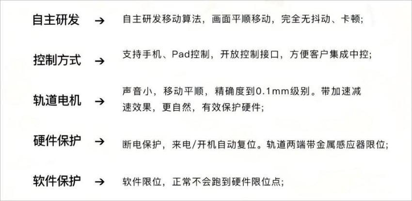 一套完整的智能滑轨开合屏一般包含这些部分: