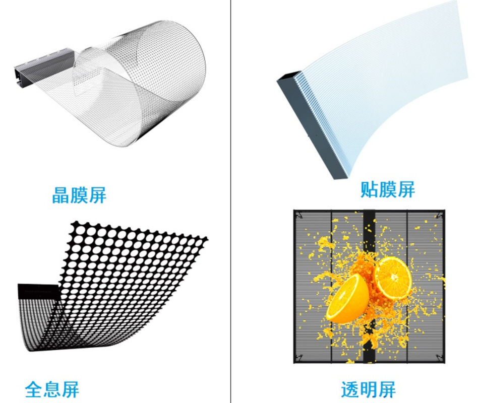 LED晶膜屏、LED贴膜屏、LED全息屏与LED透明屏各自区别特点及实物案例